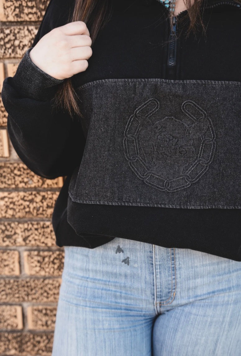 Embossed denim & puffy pullover all in one. Need I say more?!